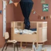 Dániában tervezett pamut baldachin, mely a kiságy fölé lógatva biztonságos és megnyugtató légkört teremt. Sötétebb alvási környezetet hoz létre, valamint kizárja a külső hatásokat, így a kicsi könnyebben el tud aludni.